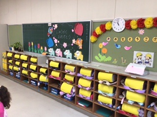 ランドセルはロッカーへきちんとしまいます。
