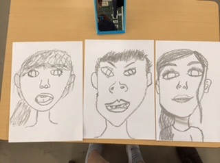 鏡を見ながら、自分の顔を描きました。
