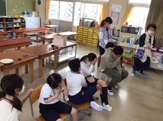 1つ目のクラスは音楽です。音を聞いて何の楽器かを考えていました。