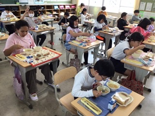 「いただきます」のあいさつの後、もりもりと食べていました。