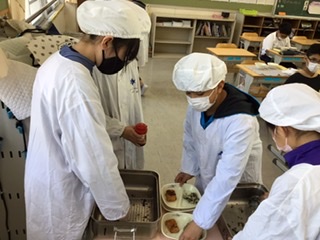 月曜日。新しい給食当番での準備ですが、さすが6年生。