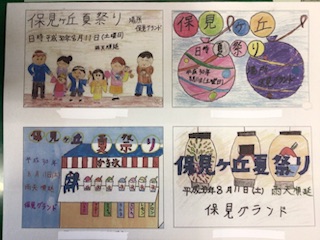 今年も保見ヶ丘四自治区夏祭り大会が8月12日(土)、保見グランドで行われます。夏祭りのポスターの募集がきました。ポスターを描いて応募したい人は、学校まで申し出てください。画用紙を渡し、詳細をお知らせします。