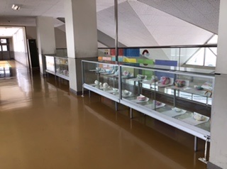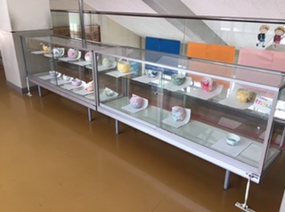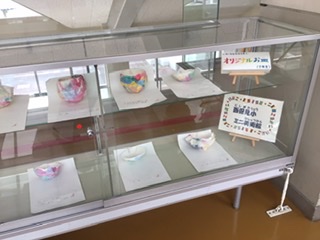 5年生の作品「オリジナルお皿」が展示してあります。