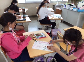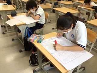 環境美化委員会は、清掃強調週間のポスターの色塗り。