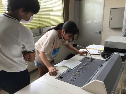 保健委員会が「夏を元気に乗り切ろう」をテーマに、熱中症予防のクイズをしました。続いて、福祉委員会が「ハートフル週間」で集まった心温まるエピソードを紹介しました。最後は、放送委員会がお昼の放送をしました。楽しい学校を作るため、委員会の5・6年生が知恵を出し合ってがんばっています。