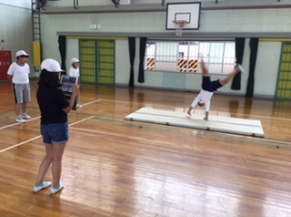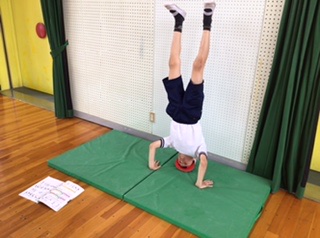 逆立ち、側転、前後転等、マット運動の練習中。