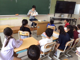 先生が読書感想文の課題図書を読み語りしています。