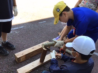 今日は1組が薪割りを体験しました。