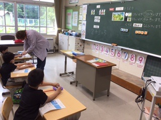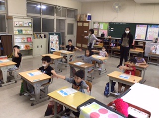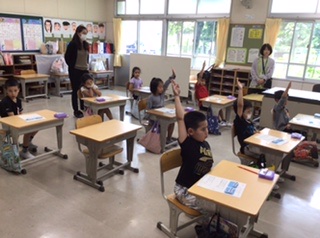 日本語教室でも、よい姿勢で手をあげています。さすがです。