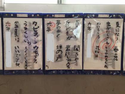 有名な俳句を小筆で書きました。自分で作ってみたい人は挑戦してみました。