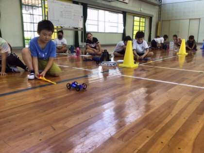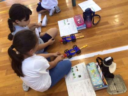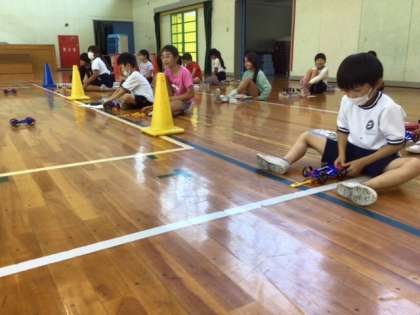 3年生 ゴムの力で車を走らせよう(7月6日)