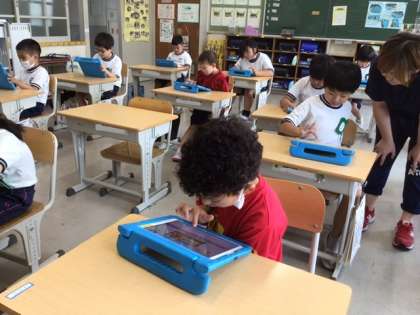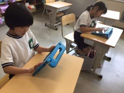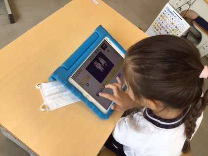 学習用タブレットにある「スクラッチ」という、プログラミングソフトを使いました。