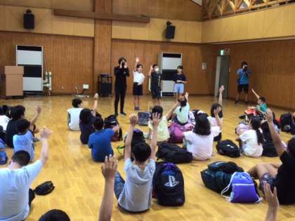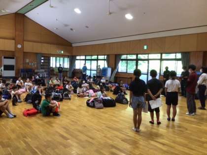 自然の家に到着しました。緑が鮮やかです。 入所式、みんなワクワクしています。