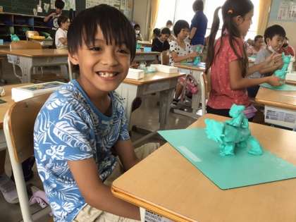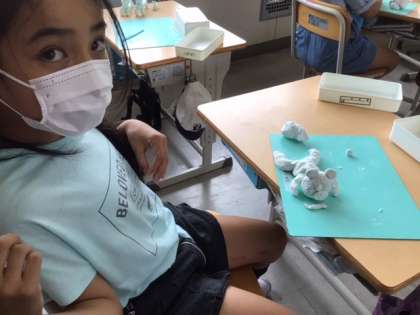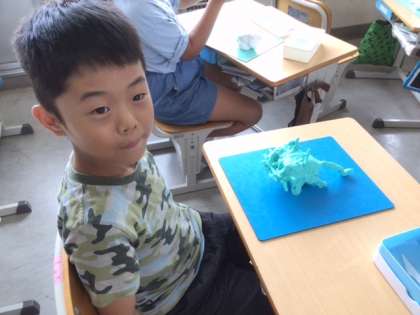図工の時間、粘土で動物を作りました。