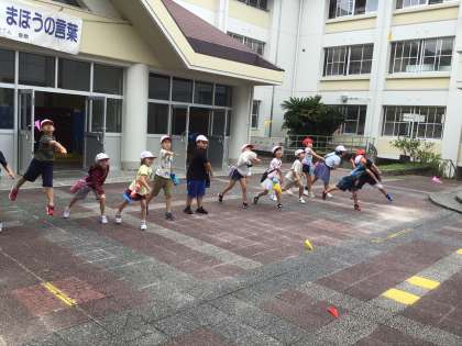 よく飛ぶようにていねいに折った紙飛行機を、フラワー広場で飛ばしました。
