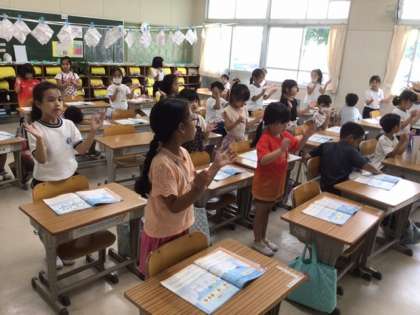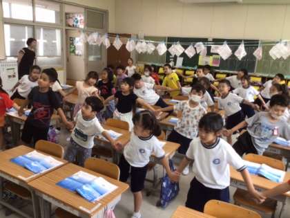 「うみ」は、みんなで手をつないで、波のようにゆれながら歌います。