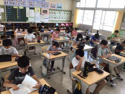 外はとても暑いですが、冷房の効いた教室内では、みんな真剣に学習に取り組んでいます。