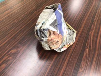 保健室では、帽子を忘れた子のために、新聞紙で帽子を作っています。