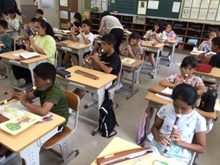 2組は音楽でリコーダーを演奏。穴をしっかりと押さえて、綺麗な音が響いていました。