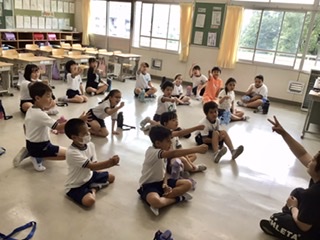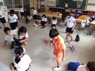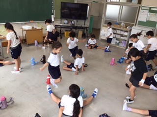 2組も教室で、柔軟や基礎的な運動を行いました。