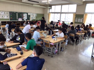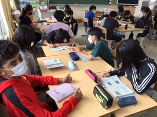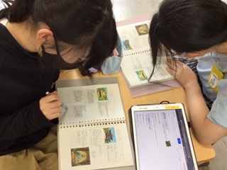 班ごとに、見学場所の見どころについて調べました。調べた内容は、バスの中で発表します。誰が、どの部分を発表するのか、話し合いました。