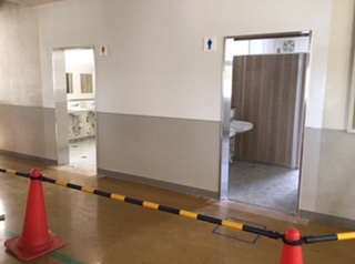 南棟のトイレは、外を覆っていた板が取れ、中が見えるようになりました。