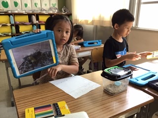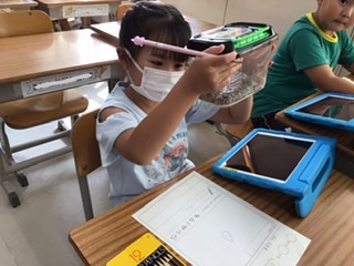 実物をのぞき込んだり、タブレットで撮影して大きくしたり、それぞれ工夫して描いています。