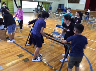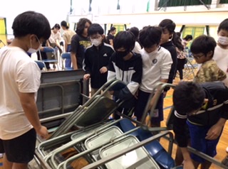 説明を静かに聞いた後、無言で、てきぱきと椅子や机を並べています。