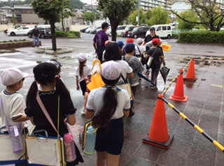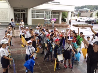 3回計画されているまち探検。初回の今日は雨が心配されましたが、出かける時には止んでいて、ひと安心です。また、たくさんの保護者の方が、付き添いボランティアとして同行してくださいました。ありがとうございました。