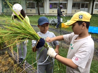 5年生 稲の天日干し(1組 10月4日)