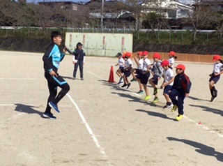 東京オリンピック400m選手である川端先生と、梅坪・浄水スポーツクラブの梅村先生をお招きして、走り方教室を行いました。