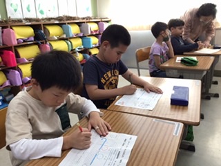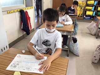 1年生、初めてのスポーツデーが21日にあります。頑張る姿を見てほしいと、お家の人へ招待状を書きました。届くのを楽しみに待っていてください。