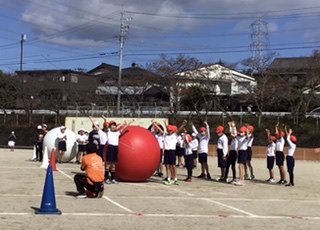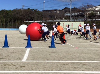 5年生 最後まで走り切れ! ジャンボ玉転がし