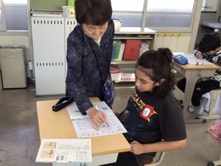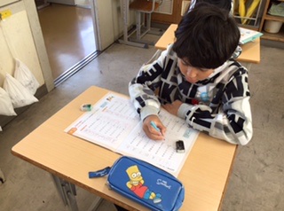 今日の書き方は硬筆です。ノートにていねいに書き込んでいます。
