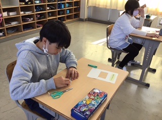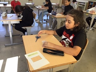 のぞみ教室では、切り出した三角形を組み合わせて面積の求め方を考えていました。