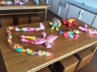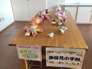 保見地区のこども園や小中学校の作品展示もあります。西保見小学校からは、3年生の「カラフルフレンズ」を展示しています。時間のある方はぜひ見に行ってみてください。