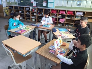 こども園を訪問して読み聞かせを行う計画です。今日は読み聞かせする本を選んだり、実際に読んでどんなことに注意したらよいのか話し合ったりしました。80%が外国人園児のこども園。読み聞かせをどう工夫したら喜んでもらえるのか考えています。