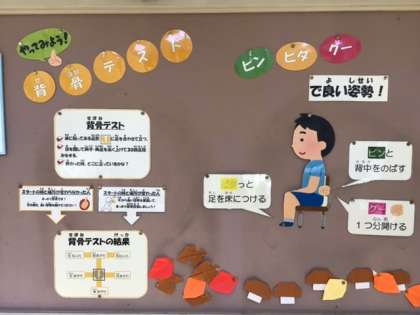 11月の生活のめあては「姿勢をよくしよう」です。保健室前に背骨テストの掲示があります。自分の背骨はまっすぐなのか、ぜひ試してみてください。