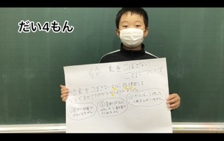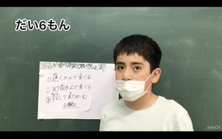 給食の食べ方や箸の持ち方、食べる時の姿勢などについて、給食委員会がクイズ形式で知らせる動画を作成しました。学級のテレビで流されます。クイズは全7問あります。全問正解できるとよいですね。