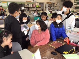 オープンに向けて、注文の事前予約を行なっています。たくさんの人に来てもらえるように、職員室にも注文を聞きに回っています。ちゃんと、おすすめメニューも紹介しています。