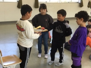 転校してしまうクラスメイトを囲んでのお楽しみ会。みんなとても楽しそうです。素敵な思い出ができました。