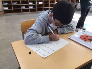 のぞみ教室では、「春夏秋冬」のことばから、仲間見つけをしていました。イラストも添えて考えています。