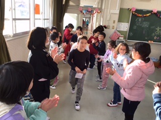 2組では転校する友だちとの「お別れお楽しみ会」。笑顔で思い出づくりをしていますが、転出が続いてちょっぴり寂しい気持ちです。