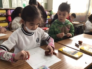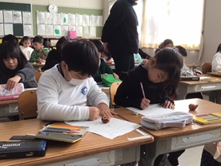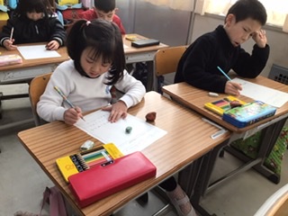 生活科でチューリップの球根を観察しました。よく見て、触って、匂いをかいで…。 いろいろな感覚を活用して記録をしています。