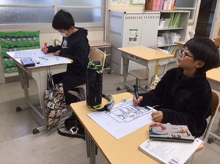 給食委員会は、牛乳を飲んでもらうためのポスターづくりです。