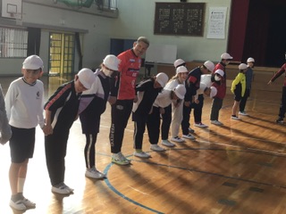 前半は体育館で、森岡先生と色々なゲームに挑戦。どうしたらうまくできるのか、何度も集まって話し合います。