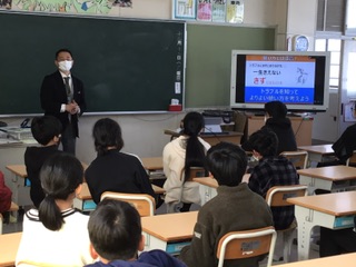 講師の方をお招きして、ケータイ•スマホ安全教室を行いました。文字だけのコミュニケーションは誤解が生まれやすいことや、これくらいなら…と思っていたことが、大きなトラブルにつながることもあると知りました。そして、トラブルになったときには自分だけではなく、家族、友だち、学校まで巻き込むことがあるという事を学びました。