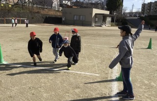 初日の今日、風は冷たかったですが「ばらばらかけっこ」と「キャッチボール」に、元気よく参加していました。