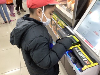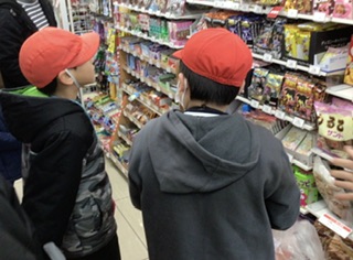 学区のコンビニエンスストアに行き、決められた予算内で自分でお菓子を選び、購入しました。お店屋さん学習で学んだことを活かし、店員さんにあいさつをしたり、話しかけたりすることができました。