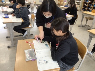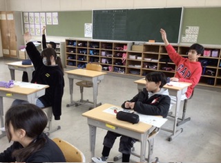 国語科「弱いロボットだからできること」という説明文の学習です。本文から、弱いロボットとは何かを読み取ります。その上で、強いロボットとはどんなロボットを指すのかを考えました。教科書にラインを引いたり、積極的に発言したり、みんな頑張っています。